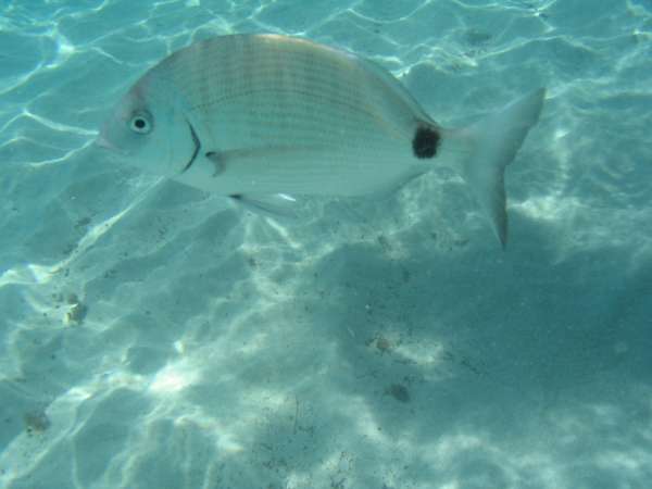Gleich vorne am Strand begrüßen Barsche die Schnorchler, denn sie hoffen, dass die Schnorchler beim Schwimmen mit den Flossen den Meeresboden aufwühlen und die Barsche so leicht an Beute kommen.