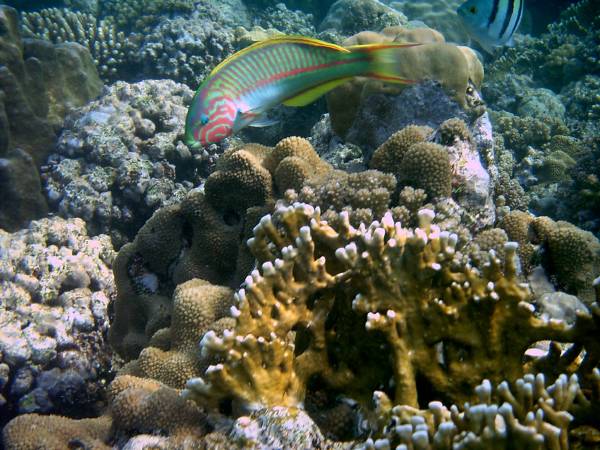 Die bunten Rotmeer-Junker trifft man auch stets am Riff.